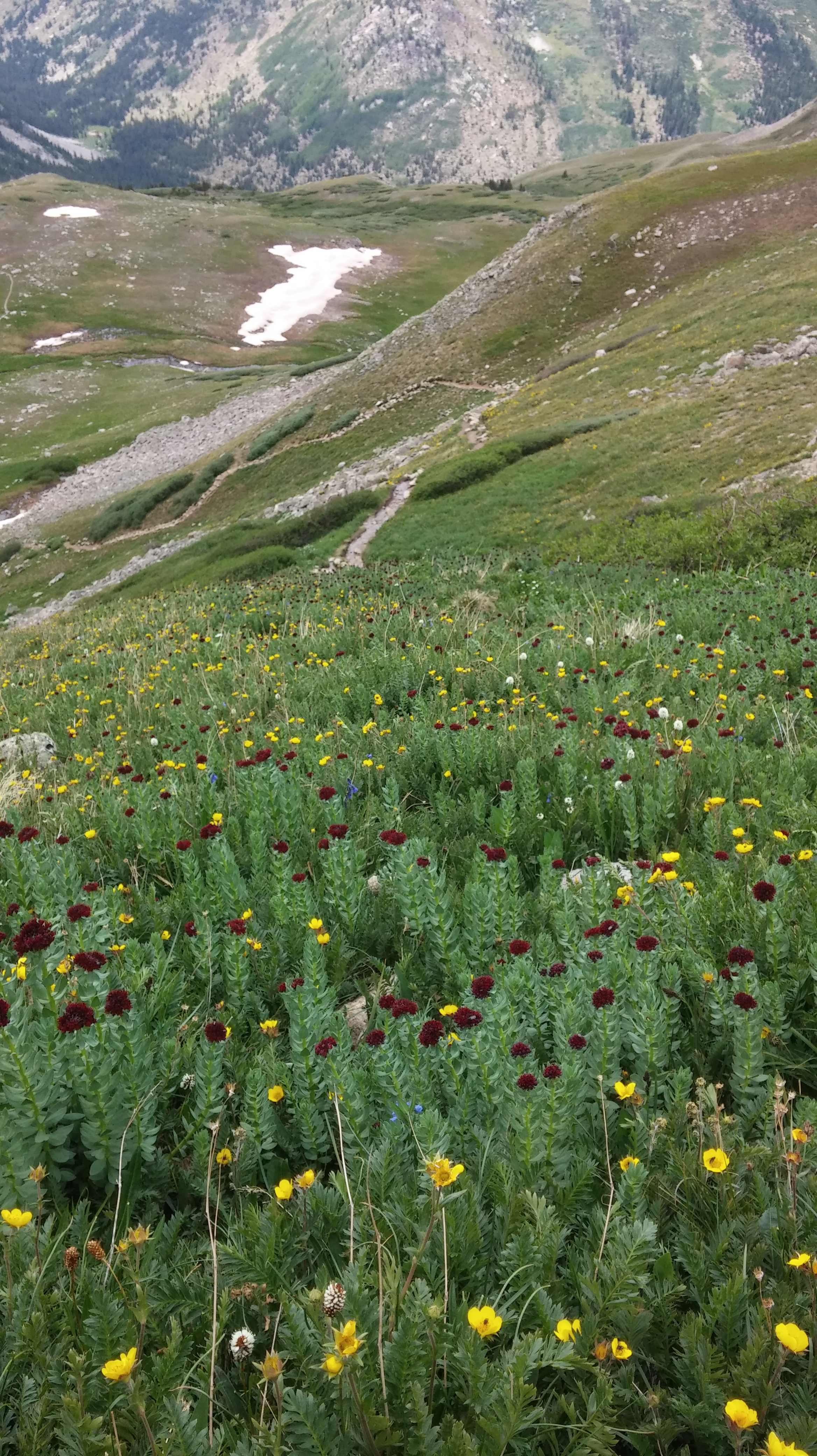 I’m hoping that you can see all the flowers as we left the trees. They were everywhere and in addition to the very bright yellow and white, there were lavender and maroon ones that were phenomenal. The forest hiking was incredible, but this mountain boasts the best views that I have every had out of tree line.