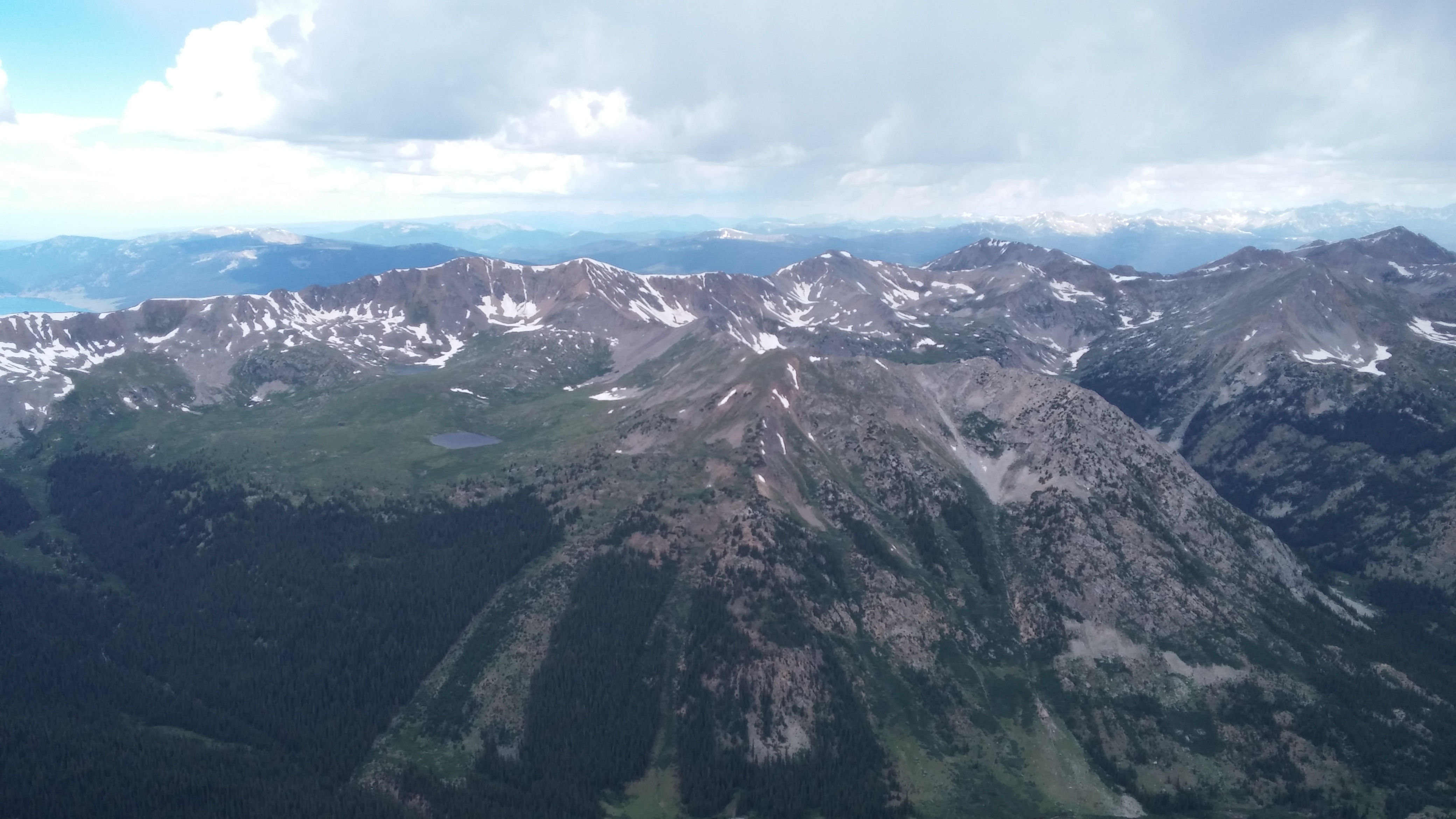 I have said this statement over and over. Mountains are to be respected, and sometimes you have to come back to them. With the clouds approaching us and her pace just getting slower and slower, we had to push forward. We were the only hikers left on the ascent. Two young men with trekking poles came down and told us that we had twenty-minutes left and we were crestfallen. We asked them to find the scared woman and help her back down. We had seen no lightning or rain, but the south was very dark. We didn’t know if we would see the top. It wasn’t 20. It was 8. I’m sorry that I left a solo woman behind, but honestly, I’ve only done one of these alone, and that was in 2008 when I didn’t know better and also on one of the crowded ones in the front range. I hope that she is ok and will find a friend to go with her in the future. Although we only wound up hiking with her for about 10-minutes, it made me sad that we had to leave her behind. She was semi-paralyzed with fear.